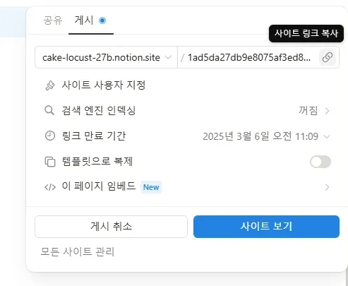 • 게시후 사이트 링크를 복사해 공유하시면 됩니다.